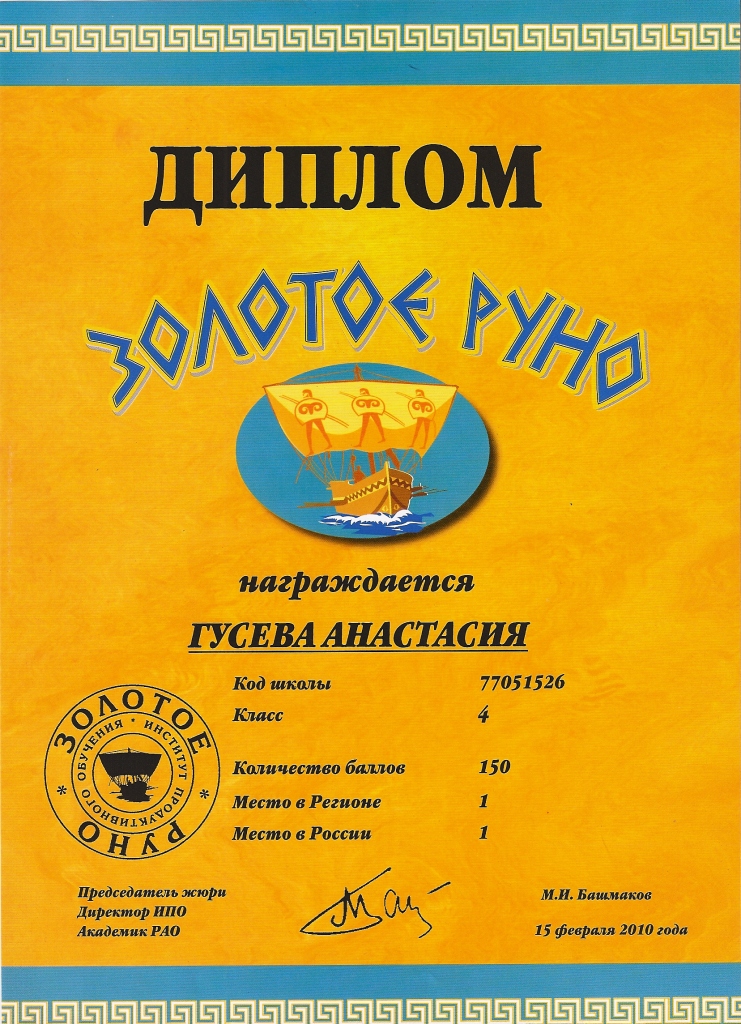 в международном конкурсе"Золотое